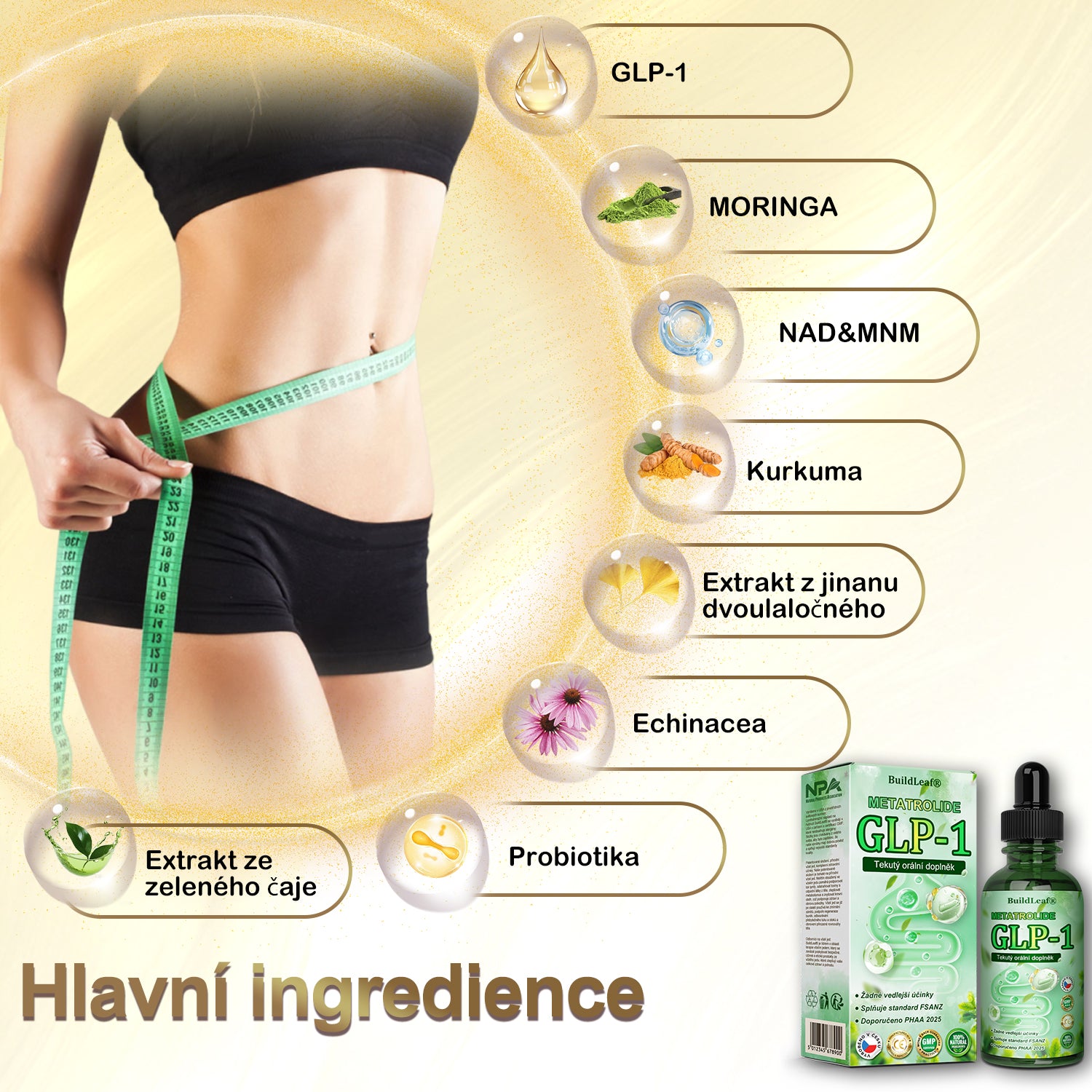 Klinicky testováno endokrinology, aktivace BuildLeaf® Metatrolide GLP-1 Bylinný Orální Tekutý Přípravek může výrazně zlepšit obezitu a další zdravotní problémy již za 7 dní.